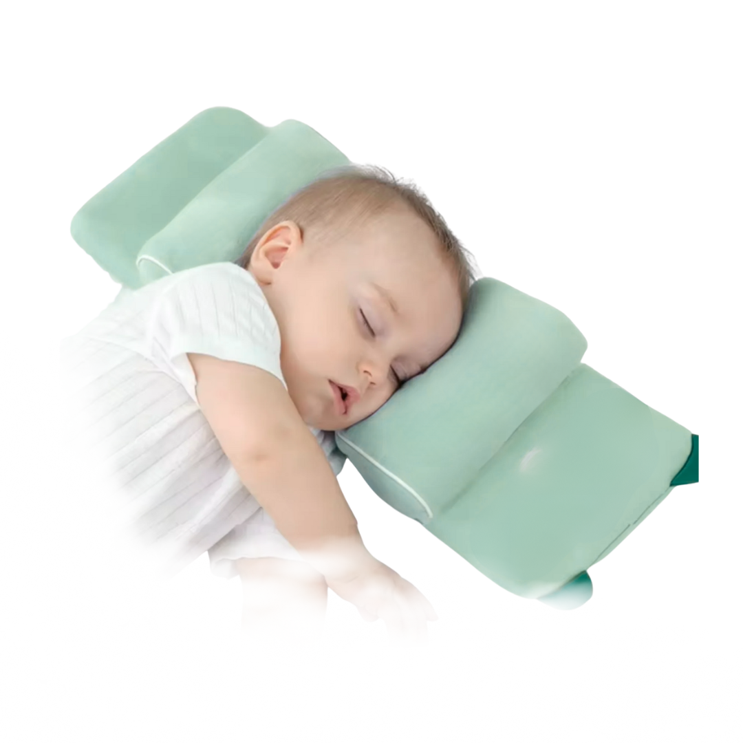 Your baby spends hours lying down every day — which can cause flat head syndrome. Our specially designed shaping pillow gives gentle support to your baby’s head.